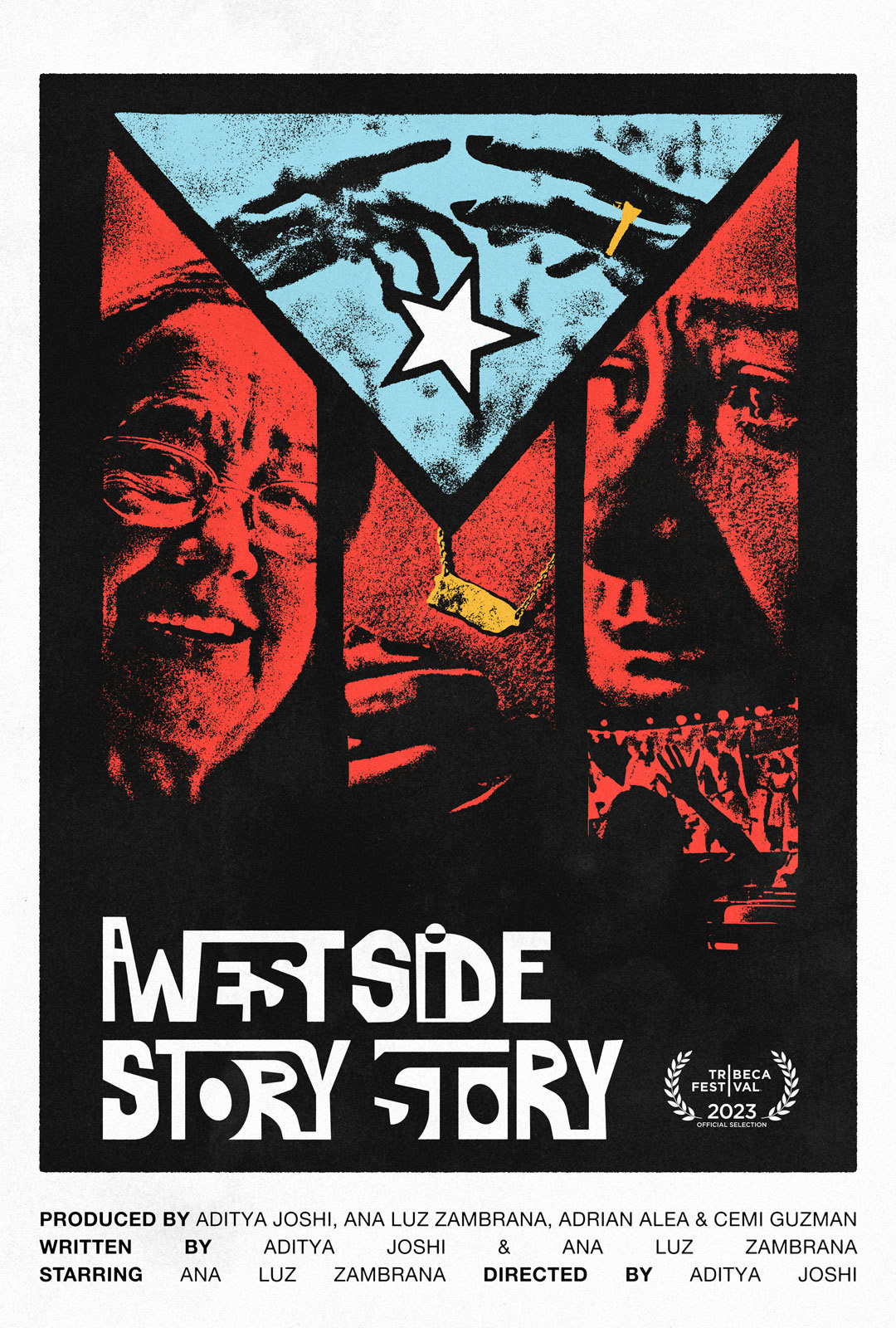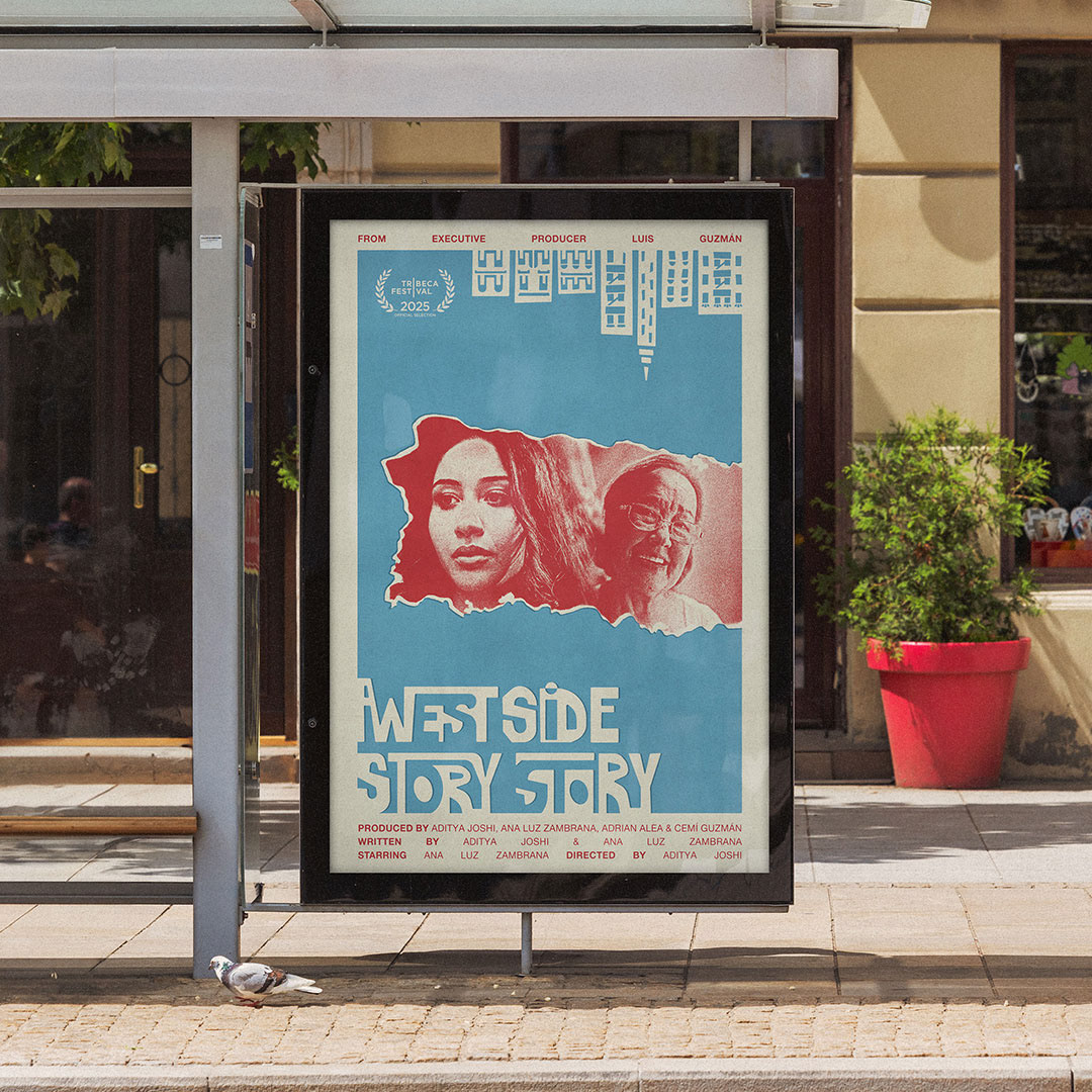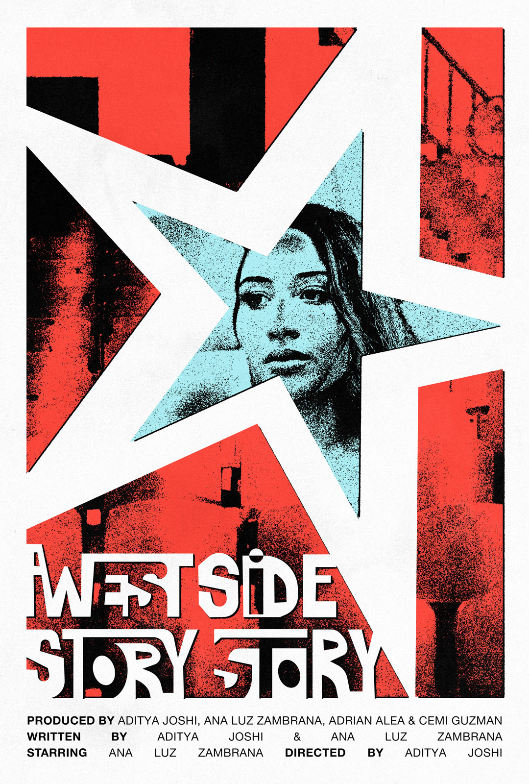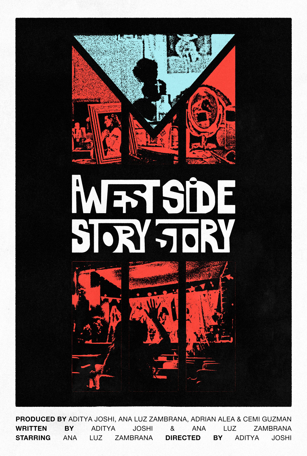Project Brief: Official poster design for the short film A West Side Story Story, written by Ana Luz Zambrana & Aditya Joshi. The film follows a Puerto Rican theatre director attempting to mount an "authentic" version of West Side Story. It explores themes of heritage, cultural stereotypes, and artistic expression, which served as the conceptual foundation for the design.